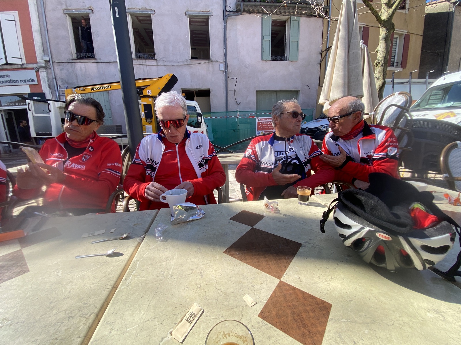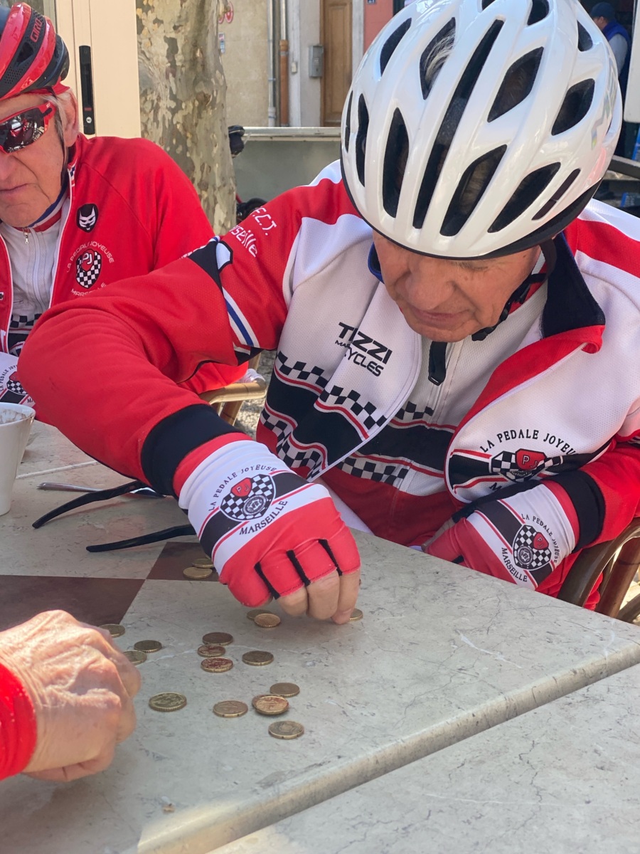 L'habituel Tinazzi - Nans-les-Pins sous le soleil revenu, avec des cafés réglés en pièces jaunes. On aime et on en redemande. 😁